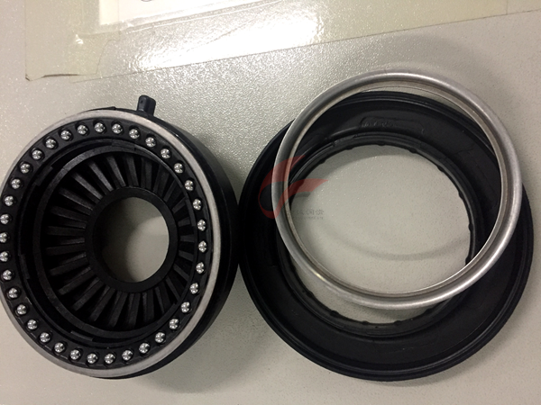 平面轴承安装于减震器的顶端,位于弹簧和减震器顶胶之间,它要承受上下的压力还能自由转动。