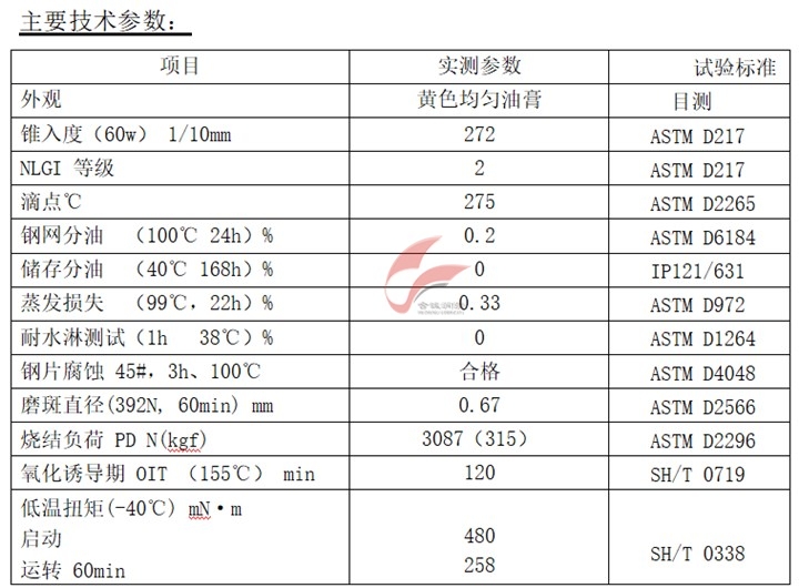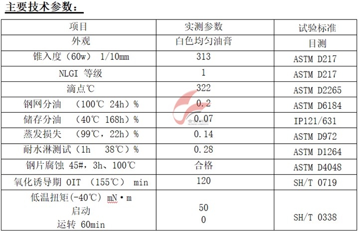 ※ 良好的润滑性、小的工作扭矩和良好的粘附性;